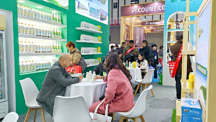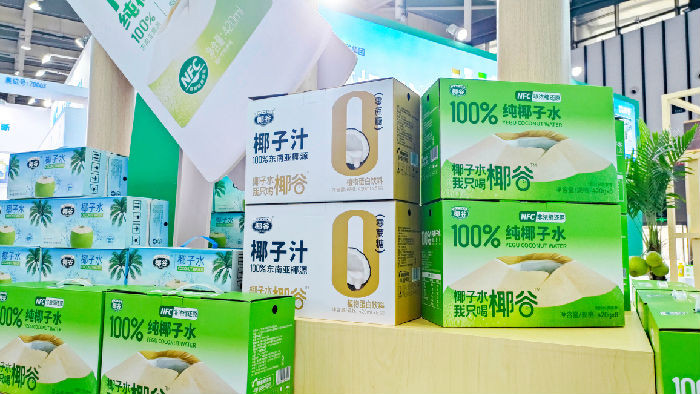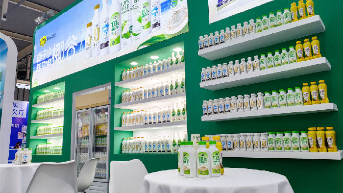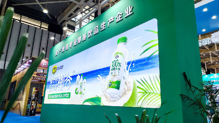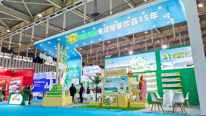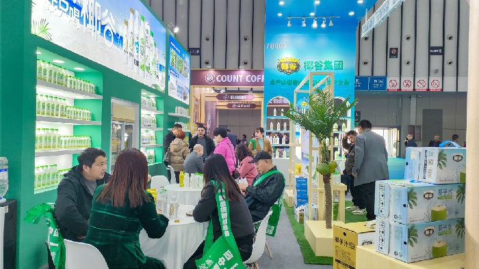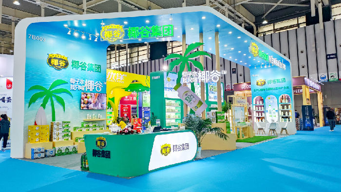 進(jìn)入博覽中心,椰谷集團(tuán)的展位位于顯著位置,100%椰子水爆品系列驚艷亮相,吸引了眾多經(jīng)銷商前來品鑒與洽談。